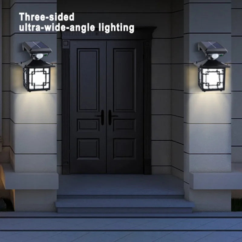 Retro Solar Outdoor Wall Lamp IP65 Waterproof Yard Decorative LED Light with Motion Sensor for Garden Street Patio Home Lighting
